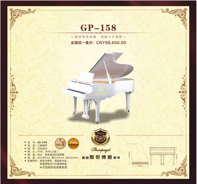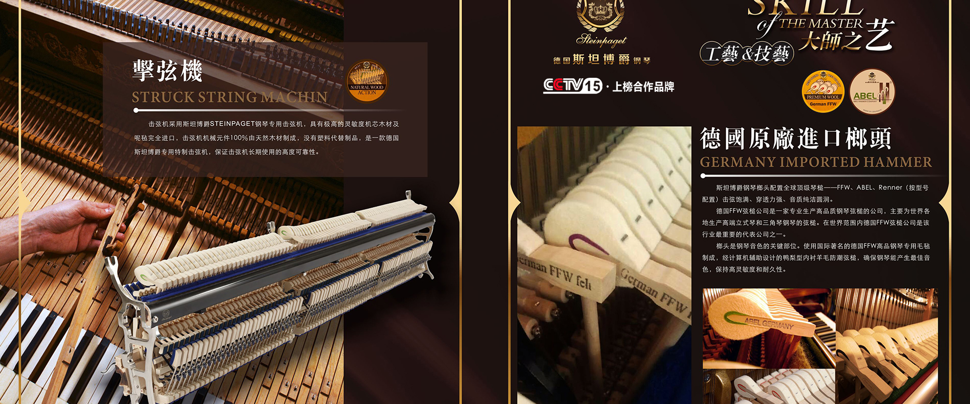 斯坦博爵是一家專注于STEINPAGET立式鋼琴與三角鋼琴的研發(fā)、生產(chǎn)與銷售的公司。我們巧妙融合先進的德國制琴工藝與獨特鋼琴設(shè)計,致力于打造卓越品質(zhì)。我們以三大核心價值為基石:經(jīng)營理念追求“高效 · 品牌 · 服務(wù)”,產(chǎn)品理念恪守“傳承 · 創(chuàng)新 · 品質(zhì)”,服務(wù)宗旨奉行“客戶需求即工作,客戶要求即追求。為鑄就非凡品質(zhì),我們?nèi)轿煌度耄阂M德國、美國、日本尖端設(shè)備與優(yōu)質(zhì)制琴材料;特邀德國頂級設(shè)計師及美國專家顧問傾情指導(dǎo),傳承歐洲經(jīng)典工藝與純正德國精髓;斥資打造恒溫恒濕生產(chǎn)車間及成品鋼琴靜置倉,確保全球任何氣候下STEINPAGET鋼琴音質(zhì)純美、演奏性能始終如一;并在中國構(gòu)建完善售后服務(wù)體系,提供國際水準的真誠服務(wù)。
